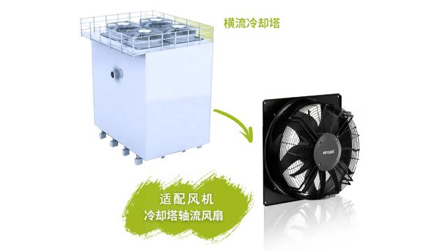 冷卻塔按照通風的方式分為自然通風冷卻塔和機械通風冷卻塔,其中機械通風冷卻塔又分為橫流塔和鼓風式冷卻塔。而橫流塔的換熱區(qū)域處于負壓狀態(tài),有利于蒸發(fā),而冷卻塔出口的熱空氣自然上升,所以橫流冷卻塔一般采用的是冷卻塔散熱風扇中的軸流風扇,采取的是頂抽風方式。